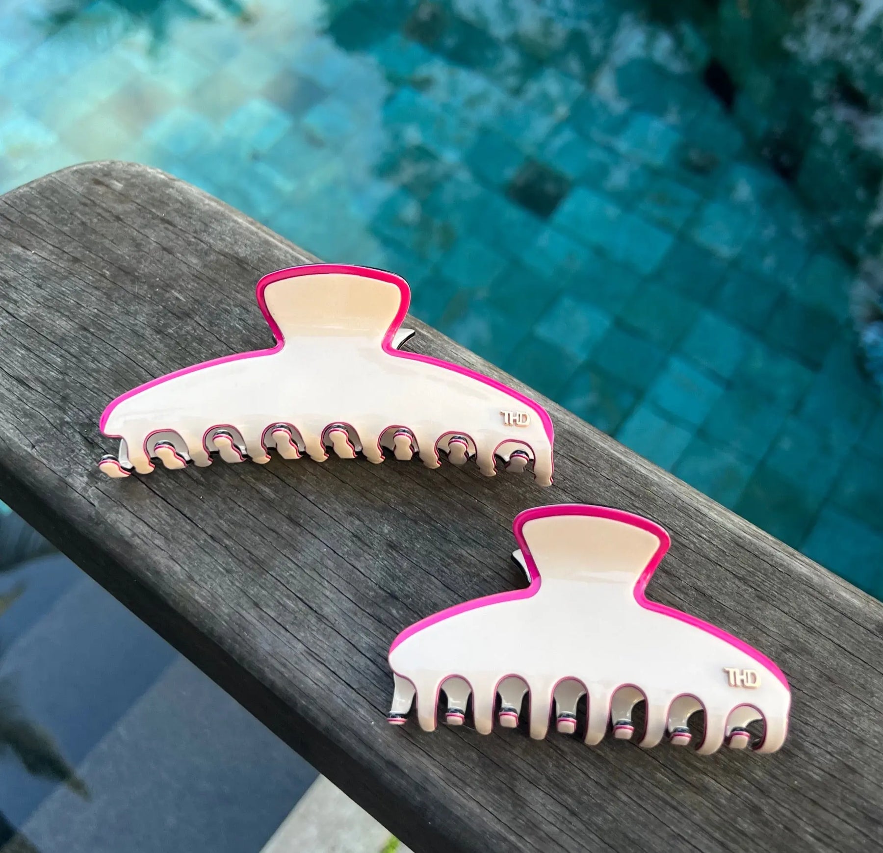 Oversized Hair Claw in Vanilla Cream & Beetroot Trim