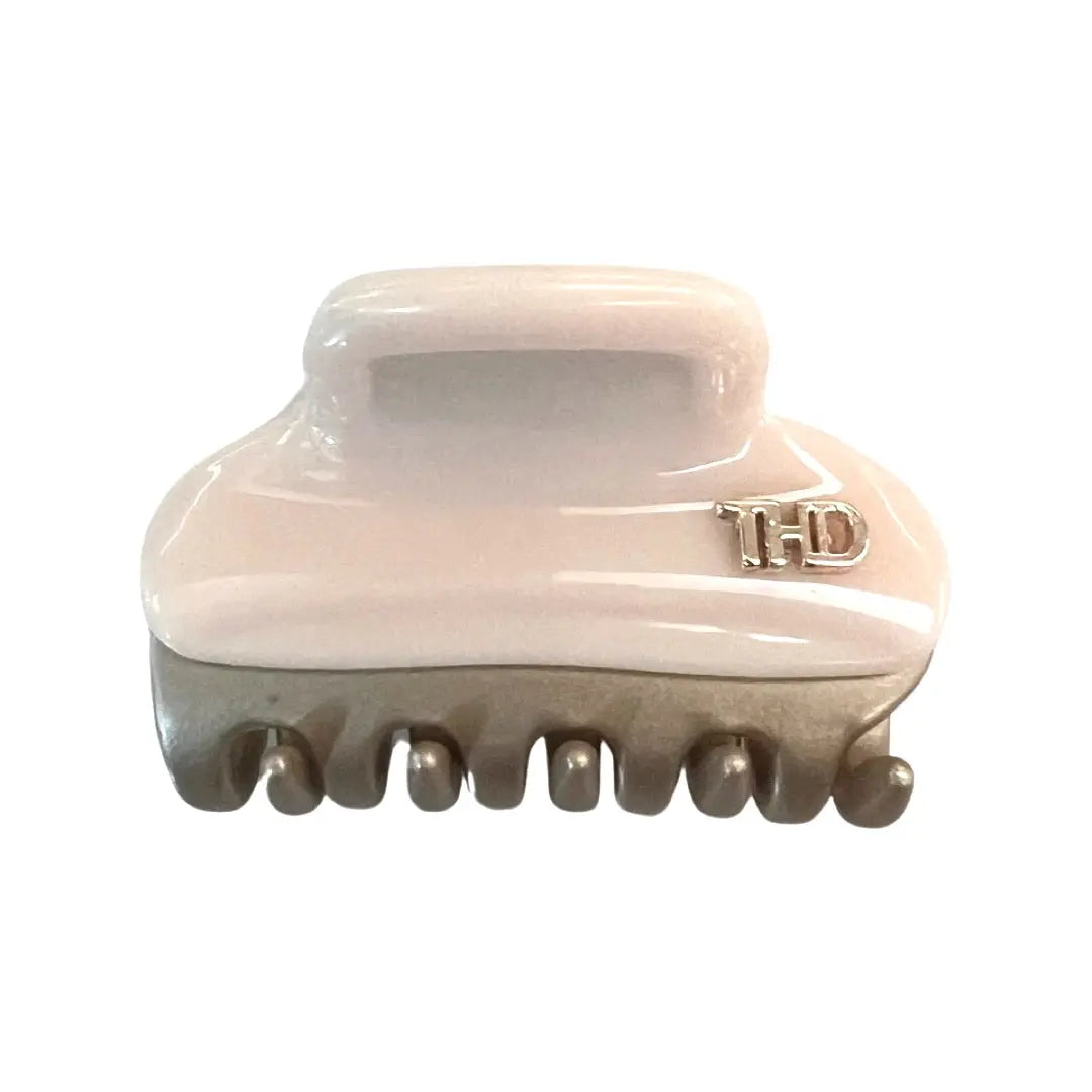 Stunning brushed metallic trim Hair Claw Clip in cellulose acetate with Nude detail to elevate your look from desk to dusk. HairFlair Aus by Tania Hird Designs uses only cellulose acetate to produce its hair claws for a glossy, stronger, more durable hair clip that is more environmentally friendly. The material derives from wood pulp and is the same durable material found in sunglass frames.