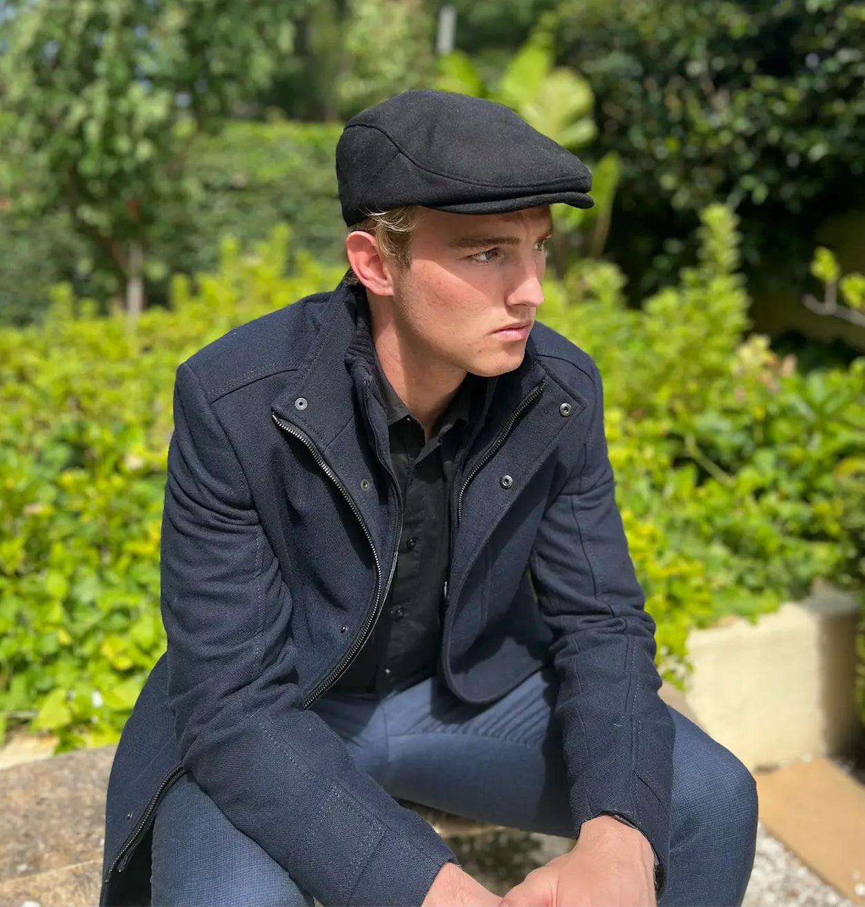 Newsboy cap, Large, in suede with Adjustable back. 58-60 cm.  Black.