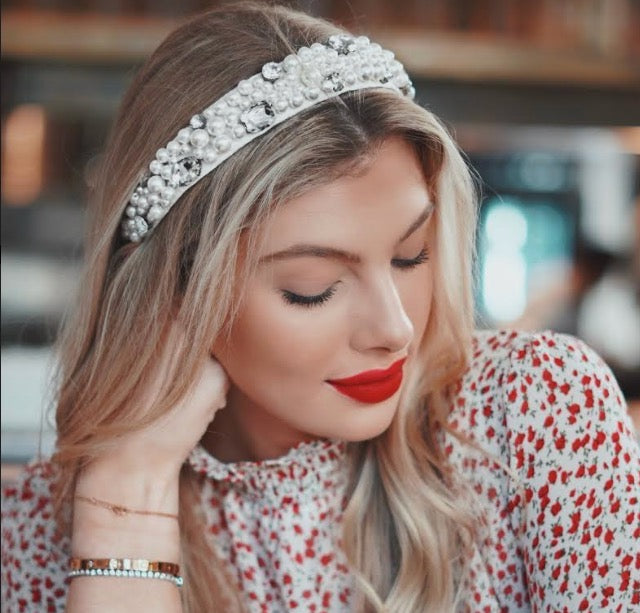 Pearl & Rhinestone Headband on Nude 3cm wide Band