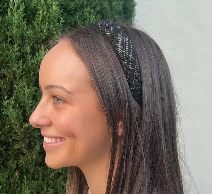 HB - Plaid Alice Headband in Black with Gold Fleck Tania Hird Designs
