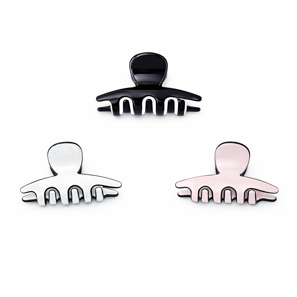 3 set small acetate hair claws: pink& black, blue & black, ivory & black