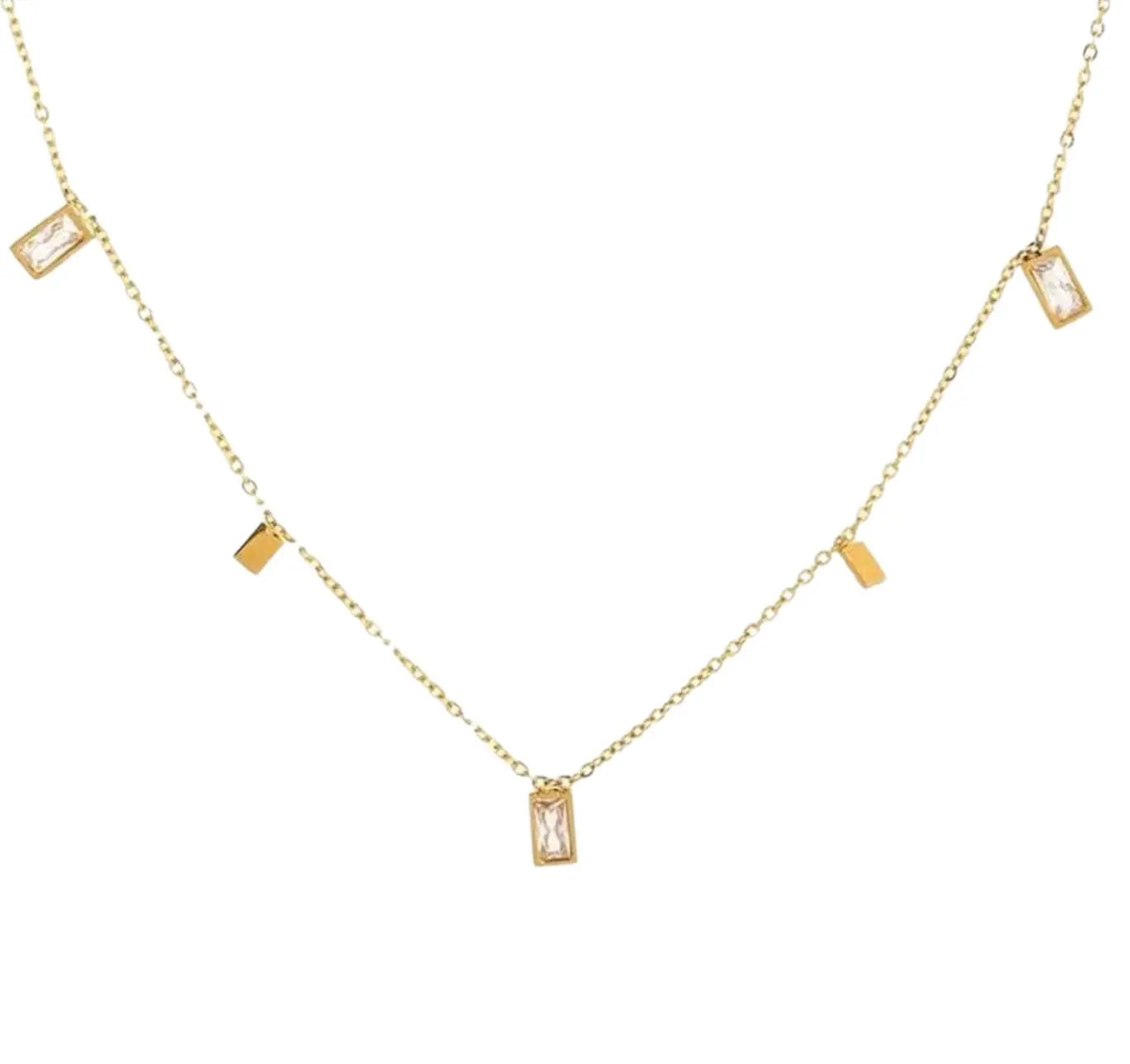 With a crisp, baguette shaped silhouette, our Necklace creates a strong and sculptural look and a pop of playful colour.