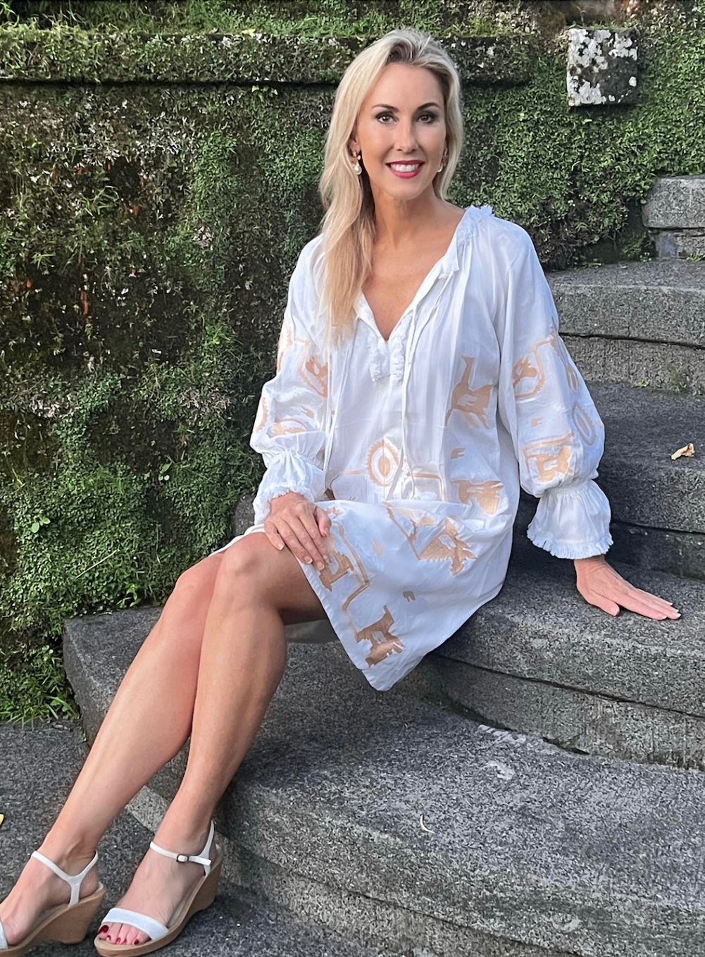Founder Tania Hird - a former lawyer, interior designer, and mother of four draws inspiration from extensive travel across sun-drenched destinations, including the Greek Isles, the Côte d’Azur, and coastal towns around the world. Through these experiences, she identified a gap for beautifully made pieces that transition seamlessly from beach to table, day to evening.