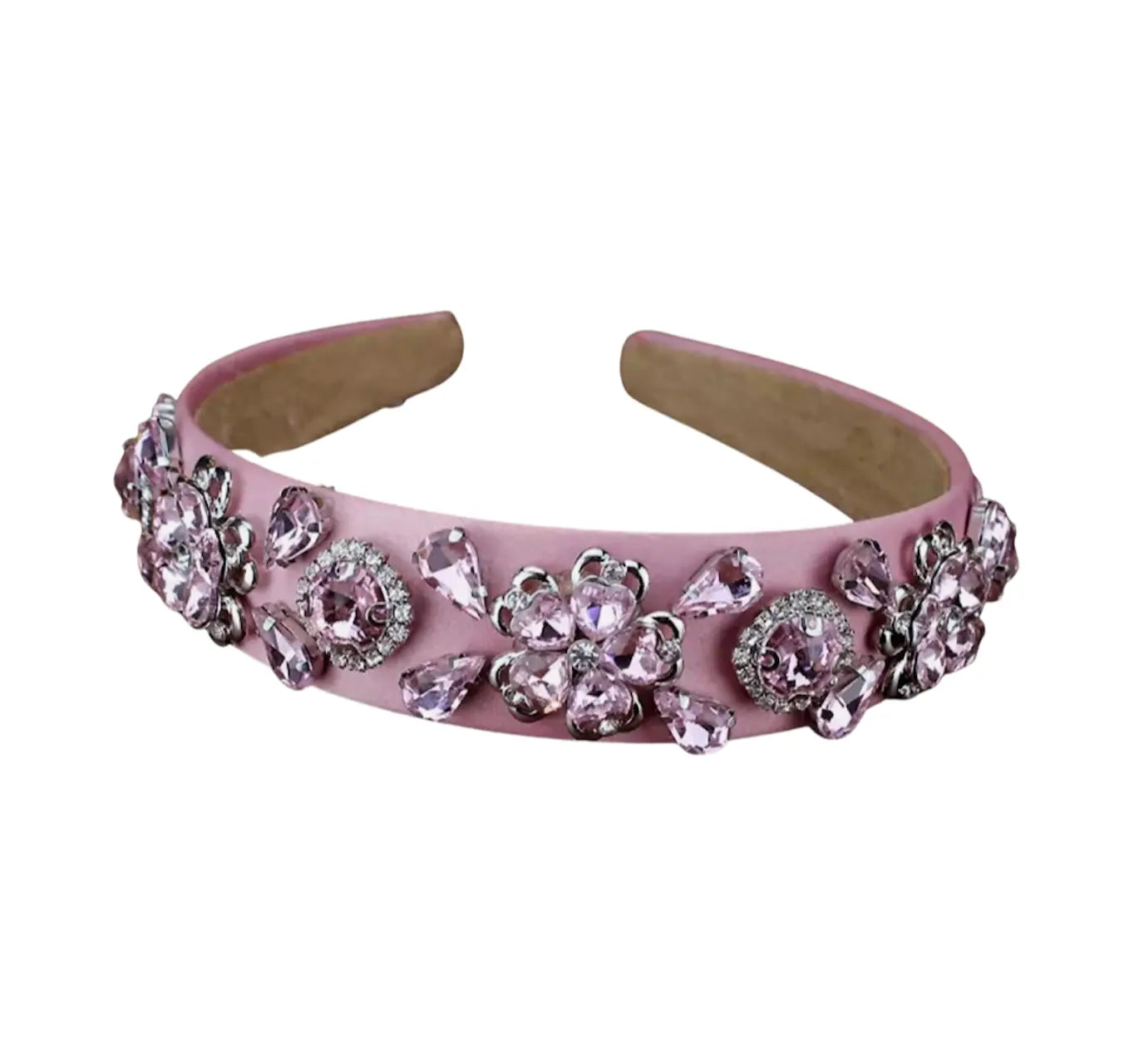 Pink handmade headband with pink gems and crystals- perfect for spring racing, or that special outfit.