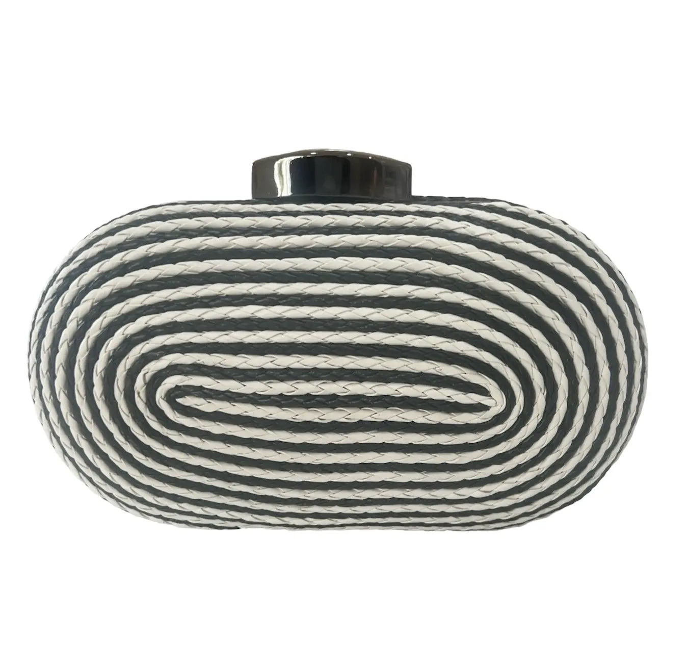 Crafted from metallic woven rope and meticulously assembled using a coiling method, the FELICITY clutch promises to turn heads. Its rounded rectangle shape sits snugly in your palm. Carry it as a clutch by concealing the shoulder chain inside or switch to a shoulder bag for hands-free convenience. Available in Gold, Black, Black/white, Rosegold