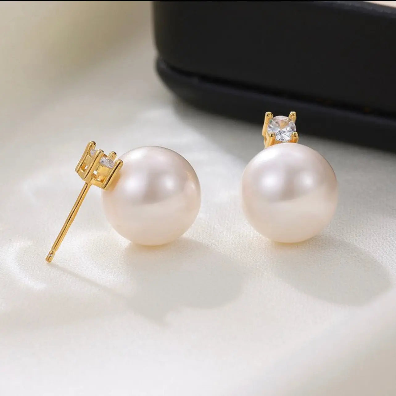 lustrous, freshwater pearl and zirconia earrings with 18K Gold plate on 925 Sterling Silver - heirloom-worthy!