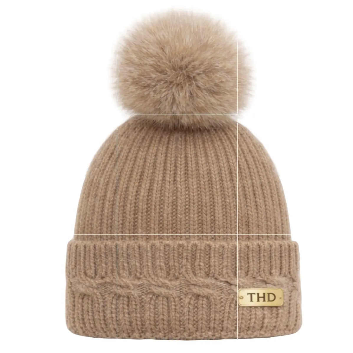 60 % Angora Beanie  - Camel & Luxe Pom Pom Tania Hird Designs