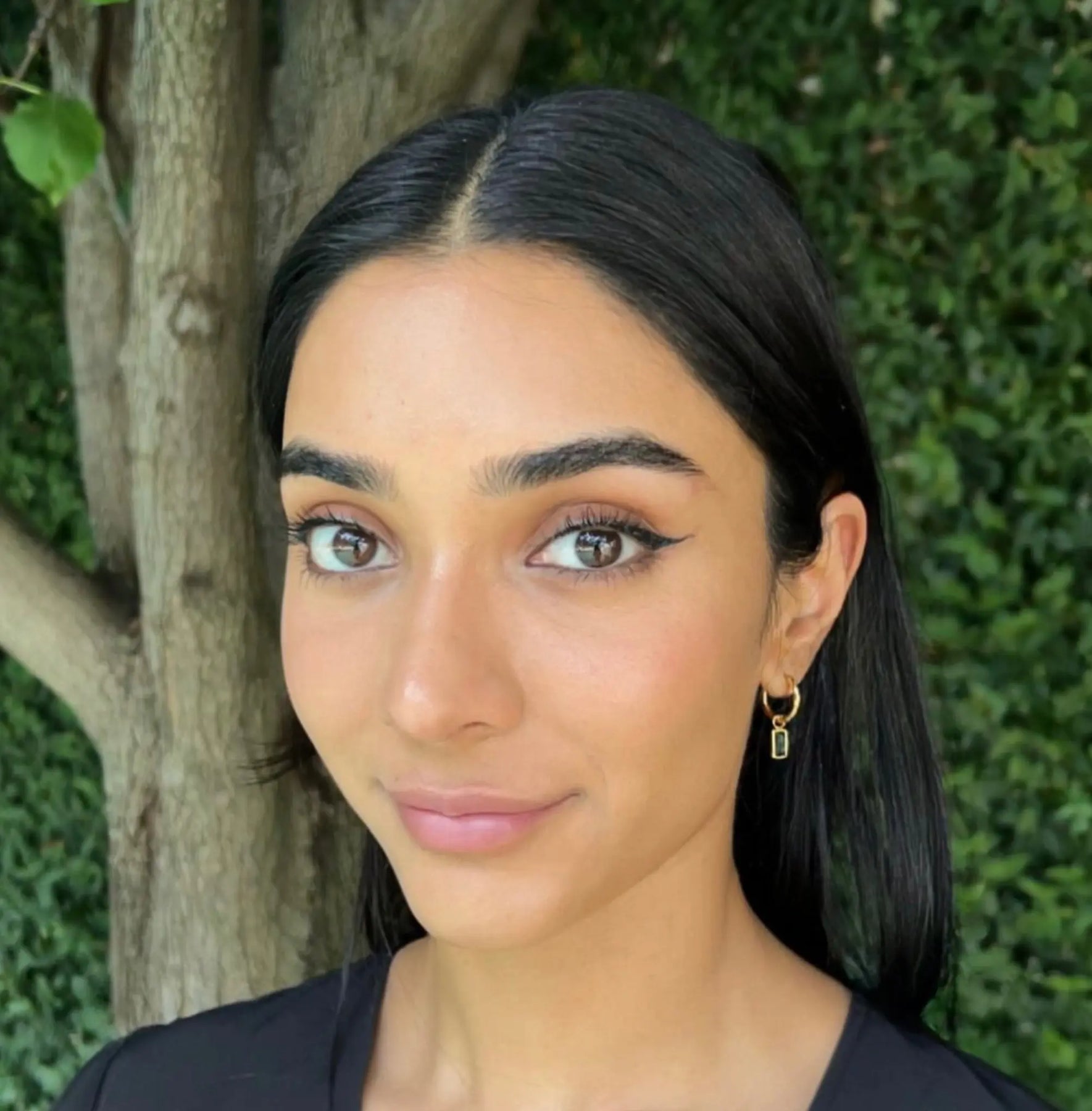 Power Baguette Earrings on gold huggies - Black