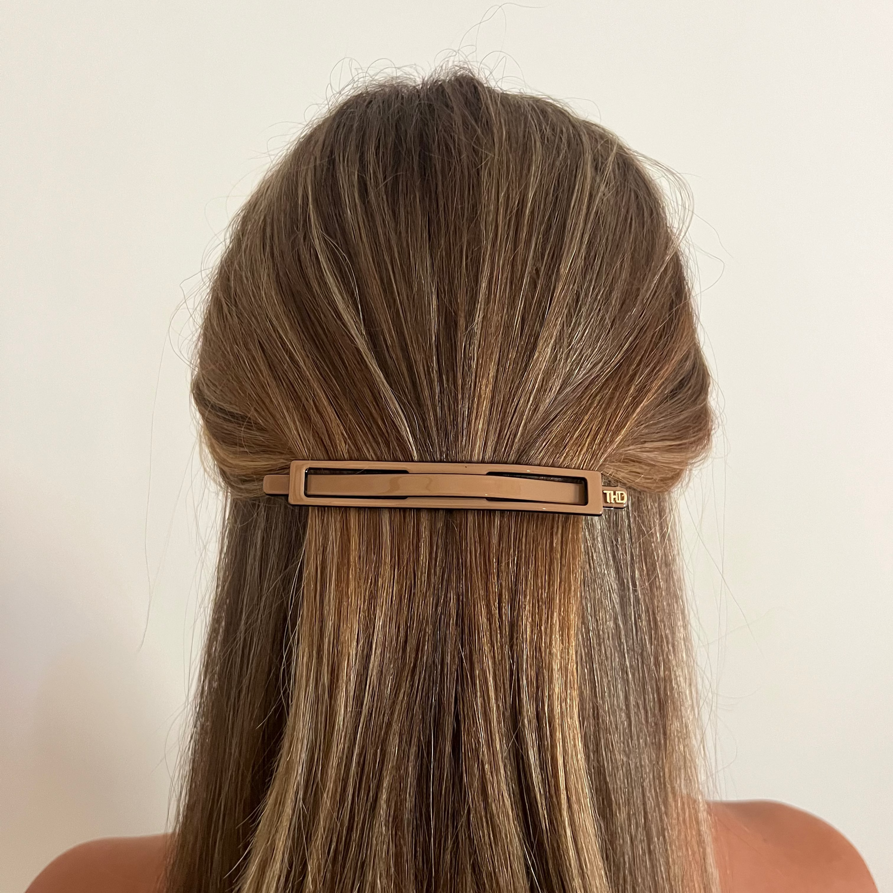A refined open-shape barrette designed for effortless polish. Lightweight yet secure, it glides smoothly into place and holds comfortably all day without pulling. Finished with a sleek, high-gloss surface, it’s the perfect understated accent for modern, elegant styling.