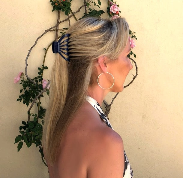 Acetate Large Cutout Hair claw in Navy - Black Trim