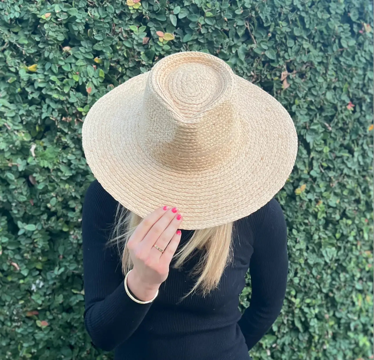 An everyday summer style with SunSmart wide Brim . With its textured weave and natural sand colour, the Raffia Wide brim Fedora hat is made for almost every outing. This hat is durable, flexible and suits heads 56-58cm . Comes with optional THD Belt in Black or Brown. Designed by HairFlair Aus & Tania Hird Designs in Australia.