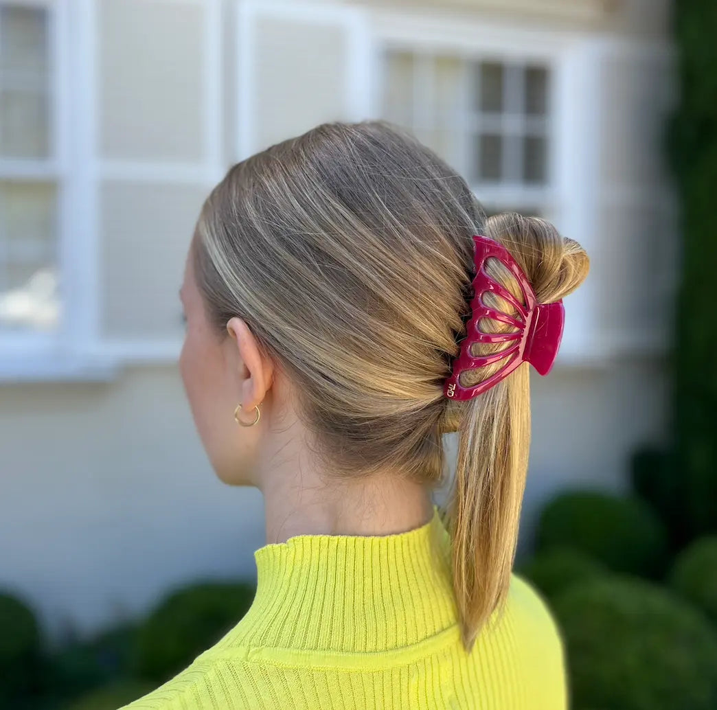 Premium Acetate Large Hairclaw with cutouts 8.5cm x 4cm x 4cm in Fashion Pantone colour of the Year 2023 Viva Magenta.