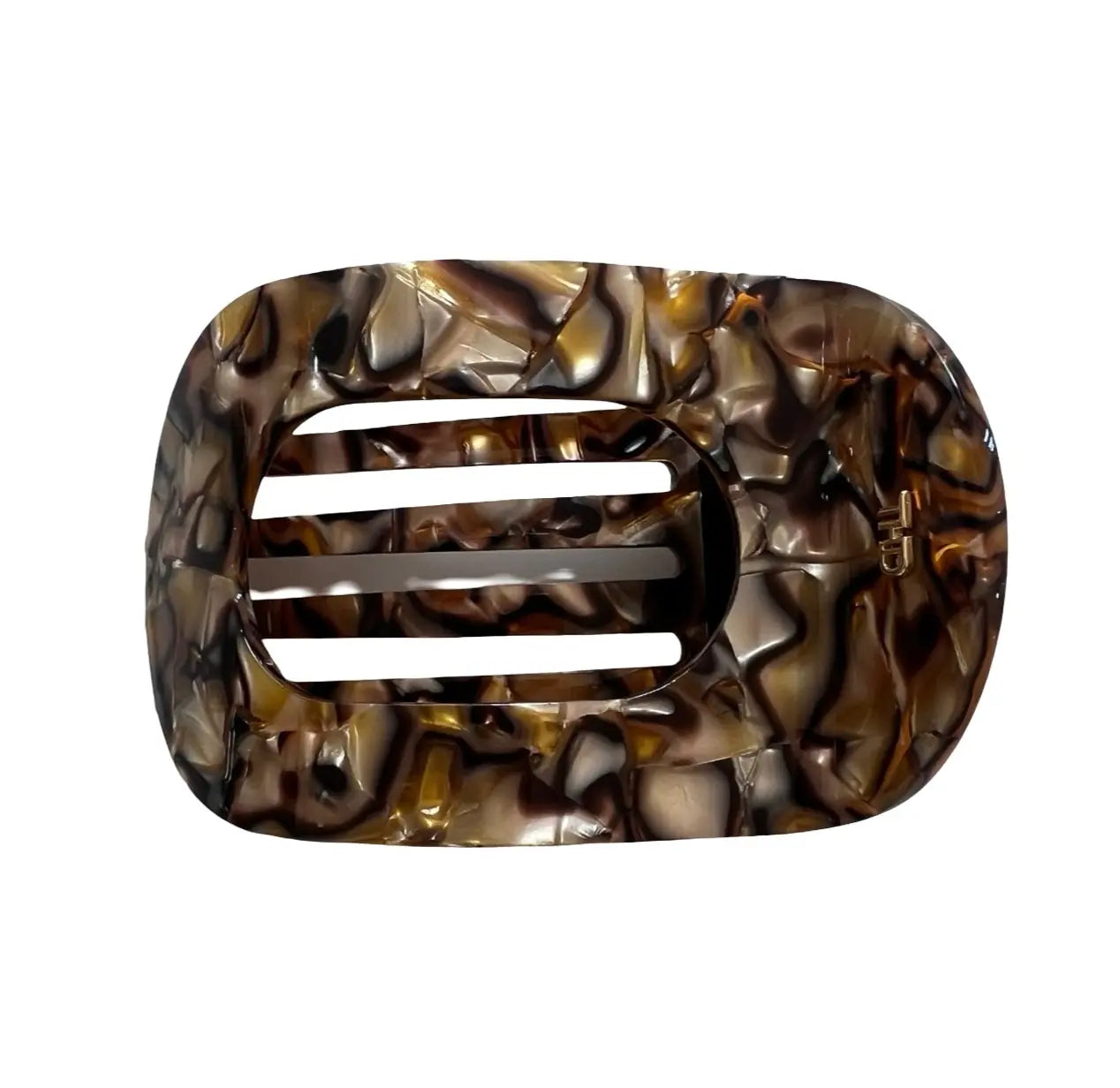 WS Acetate Flat Hair Claw in Gold Brown Marble