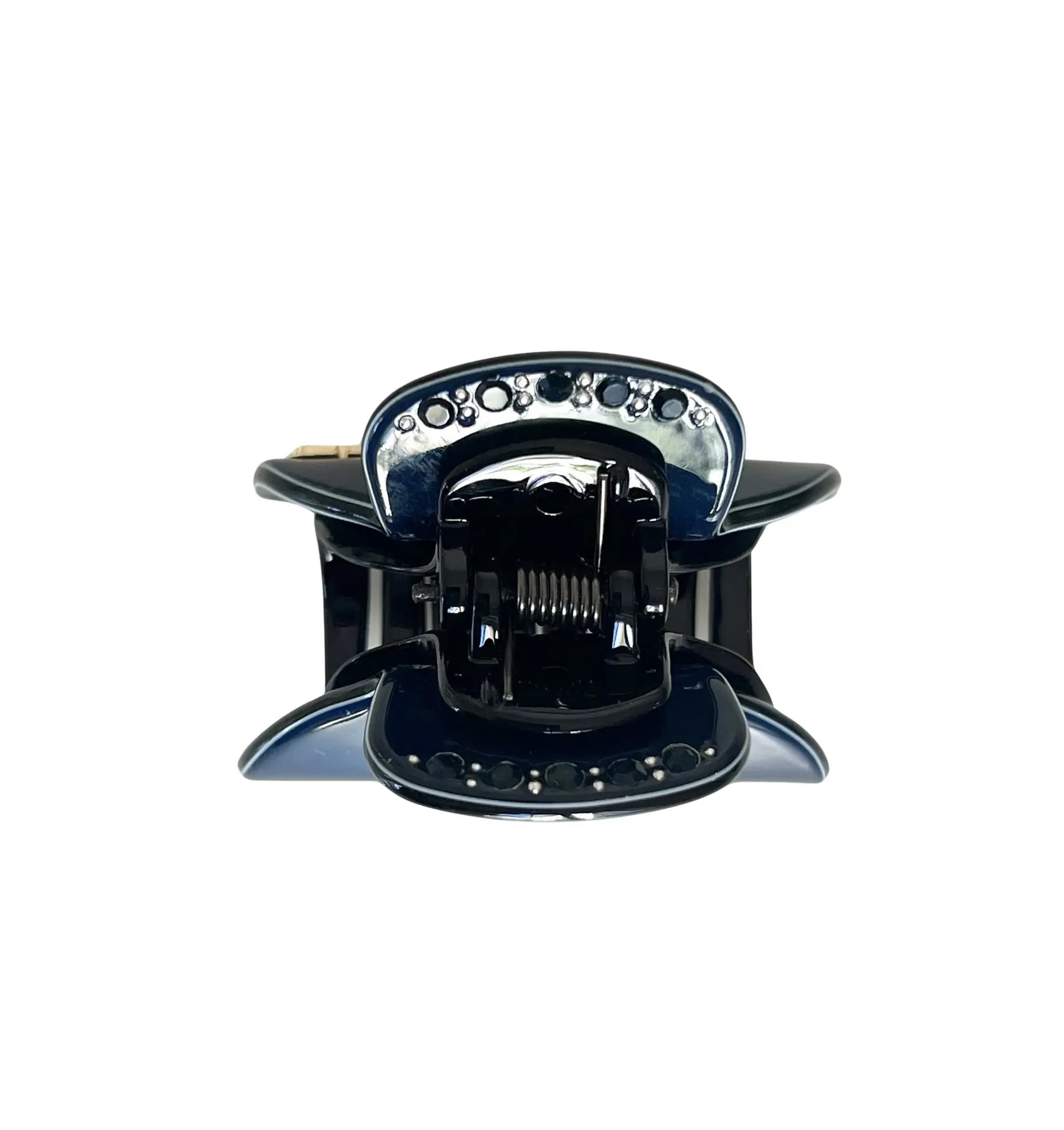 Small Deep Blue Hairclaw with crystals on ends- 4.2cm x3cm x3cm