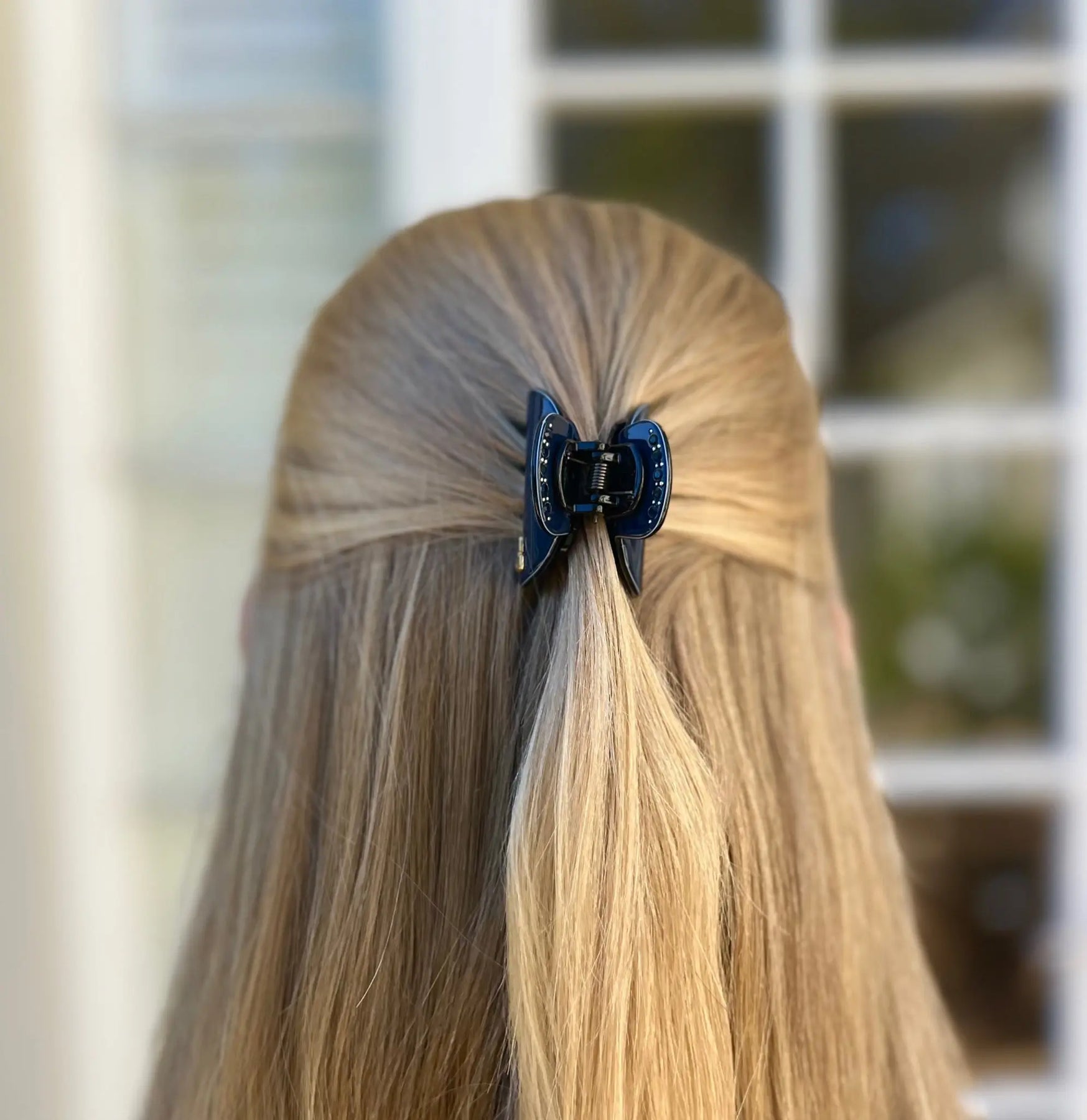 Acetate Small Hair Claw & Crystals –  Deep Blue