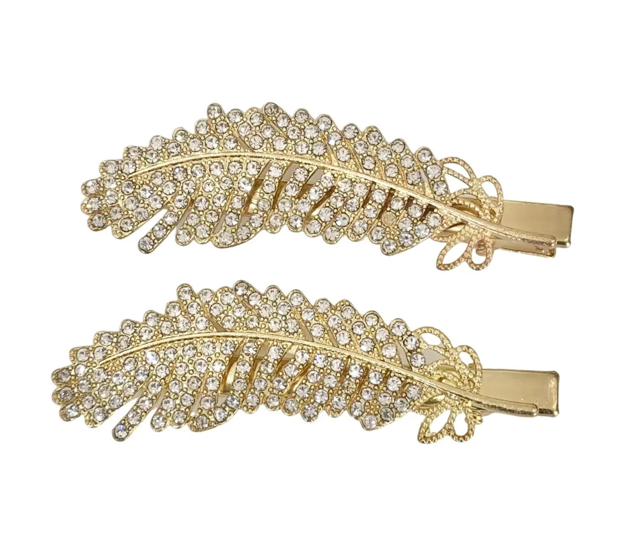 Gold leaf with Crystals Jewellry for your hair Snap Pins . Wear one or more.